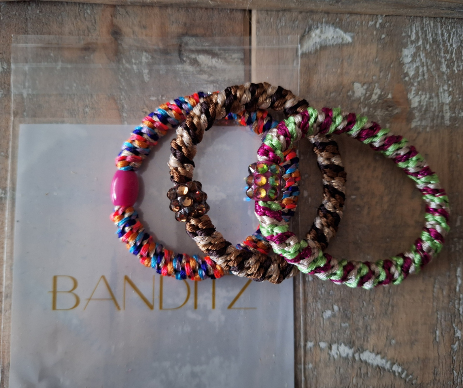 BANDITZ zijn superleuke haarelastiekjes die je ook als armbandje kan dragen. Ze blijven goed zitten, ongeacht of je dik, dun of krullend haar hebt.