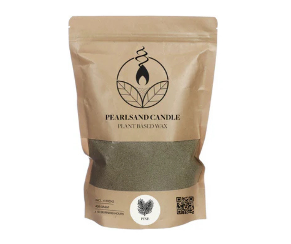 Kaarsenzand, ook wel bekend als kaarswax, een poeder dat gemaakt is van plantaardige wax.Het product wordt gebruikt om kaarsen te maken zonder mallen en gedoe.
